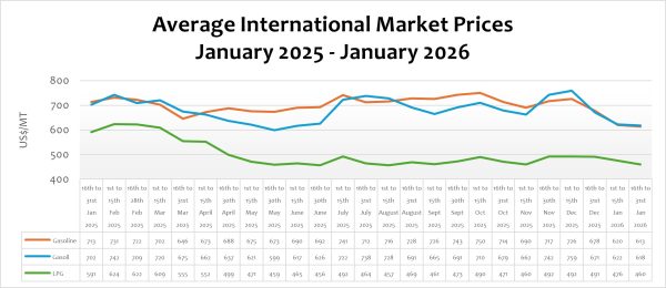 In the pricing window under review, the global market prices of petrol, diesel, and LPG decline by 1.07%, 0.68%, and 3.40%, respectively, due to a relatively oversupply in the market and the US capture of the Venezuelan president.