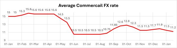 The cedi began the year 2025 at about GHS15/USD, before rising to about GHS15.80/USD. It, however, declined sharply in the second quarter of the year to GHS10.50/USD. The local currency, although volatile throughout the year, was quite stable throughout the second half of the year. This brought predictability in business planning, resulting in the sustained decline in pump prices from an average of about GHS15.4390/Ltr of diesel in January 2025 to GHS12.5350 in December 2025.