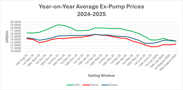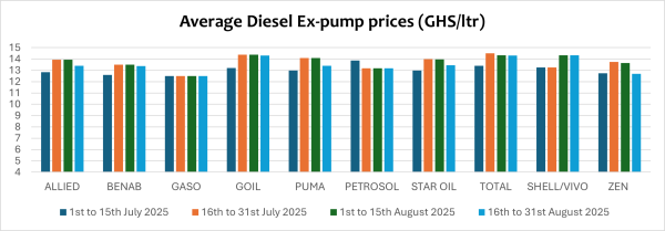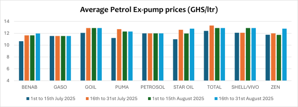 Most OMCs have begun increasing their pump prices largely due to recent concerns of FX unavailability leading to the depreciation of the cedi. Pump prices of petroleum products have been on a downward trajectory since February following the significant appreciation and stability of the cedi against the US dollar and plummeting international price of crude and petroleum products. The cedi, which was trading at about GHS14.85/USD at the end of December 2024 appreciated significantly since April to about GHS10.75/USD in the beginning of August 2025. As a result, pump prices declined significantly by an average of 20% since the beginning of the year.